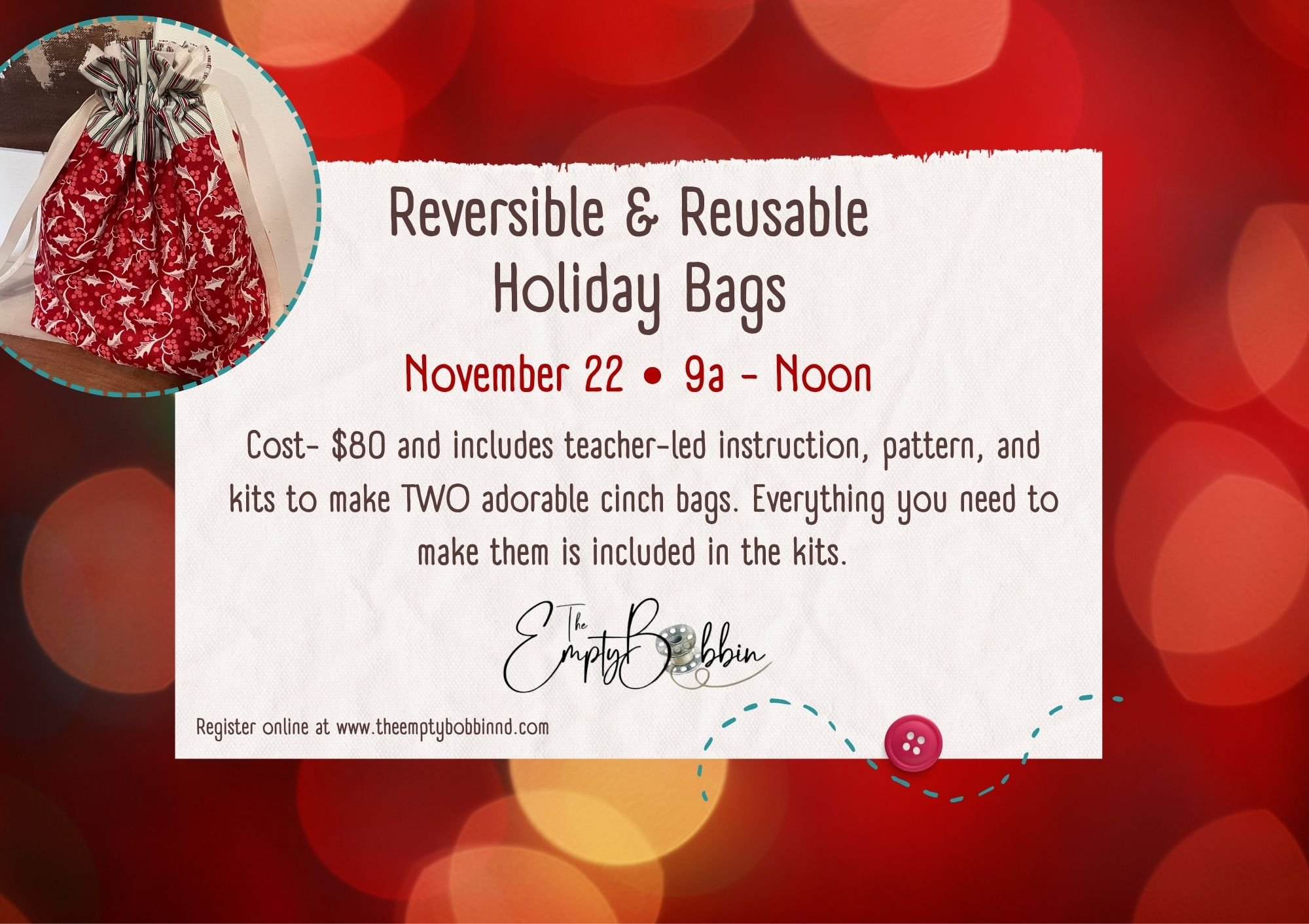 November 22: Reversible/Reusable Holiday Cinch Sack - $80